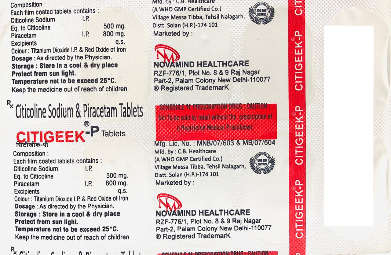 CITIGEEK-P is a combination of Citicoline Sodium and Piracetam, formulated to support cognitive function, memory enhancement, and neuroprotection. It is commonly used in the management of stroke recovery, Alzheimer’s disease, dementia, and other neurological disorders.