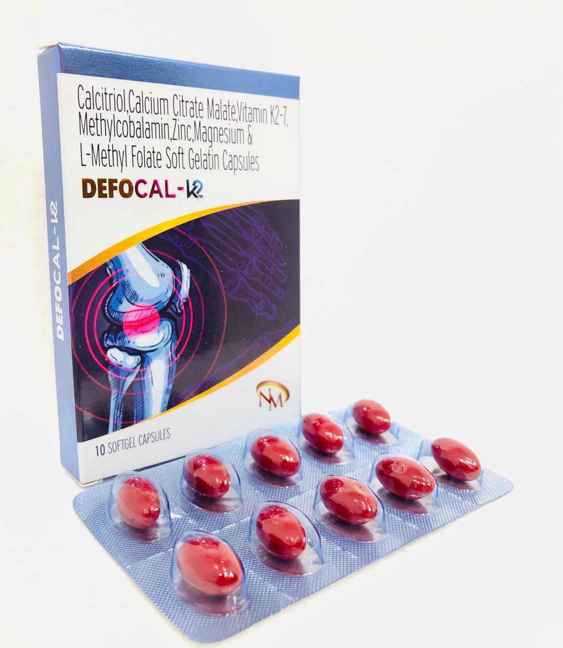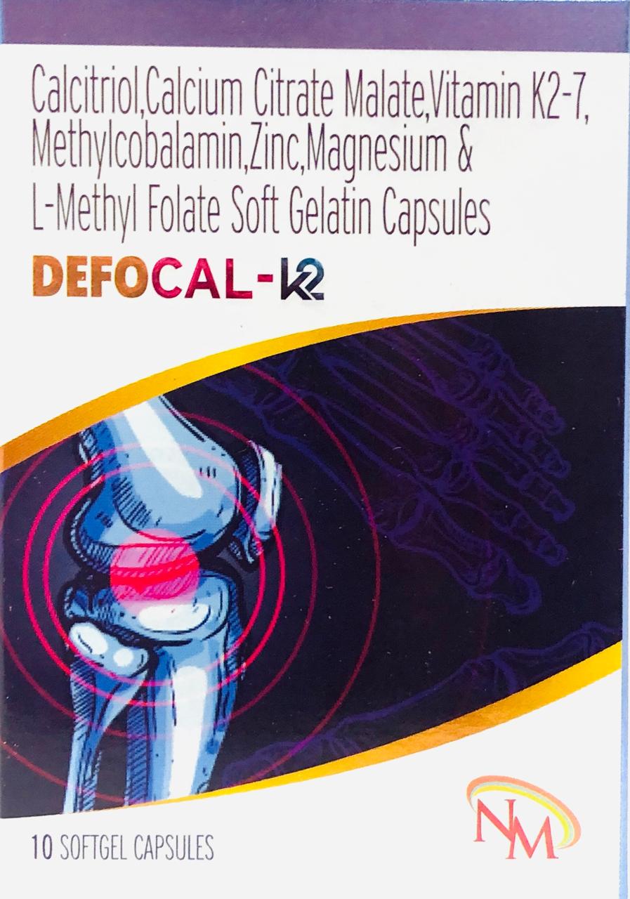 DEFOCAL-K is a nutritional supplement that supports bone health, calcium absorption, nerve function, and overall well-being. The combination of essential vitamins and minerals helps in improving bone density, reducing the risk of osteoporosis, and maintaining healthy muscles and nerves.