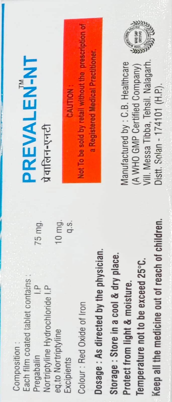 PREVALEN-NT is a thoughtfully formulated combination of Pregabalin and Nortriptyline, designed to provide effective relief from nerve pain and neuropathic conditions. Pregabalin works by calming overactive nerves, while Nortriptyline, a tricyclic antidepressant, helps modulate pain signals, enhancing overall pain management.